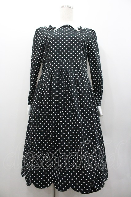 Nile Perch / リボン襟ドット長袖ワンピース 黒X白 I-26-01-24-064-LO-OP-SA-ZI