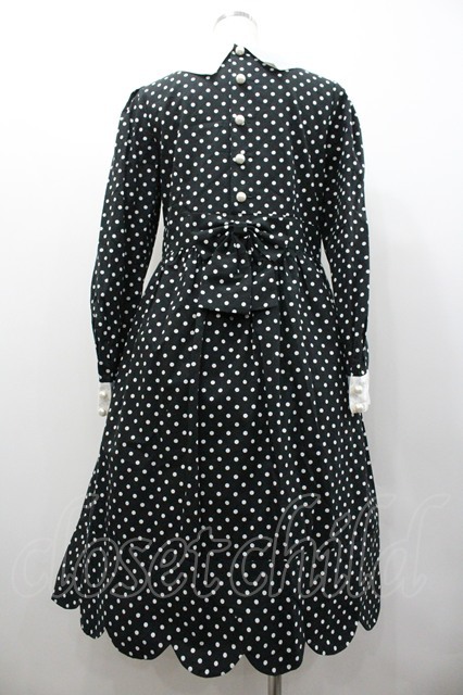 Nile Perch / リボン襟ドット長袖ワンピース 黒X白 I-26-01-24-064-LO-OP-SA-ZI [2100060000048582-I-26-01-24-064-LO-OP-SA-ZI]