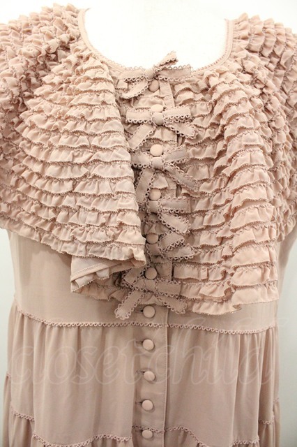 KANEKO ISAO / ピコフリル襟ノースリーブワンピース ピンク I-26-01-24-071-EL-OP-SA-ZI [2100060000045416-I-26-01-24-071-EL-OP-SA-ZI]