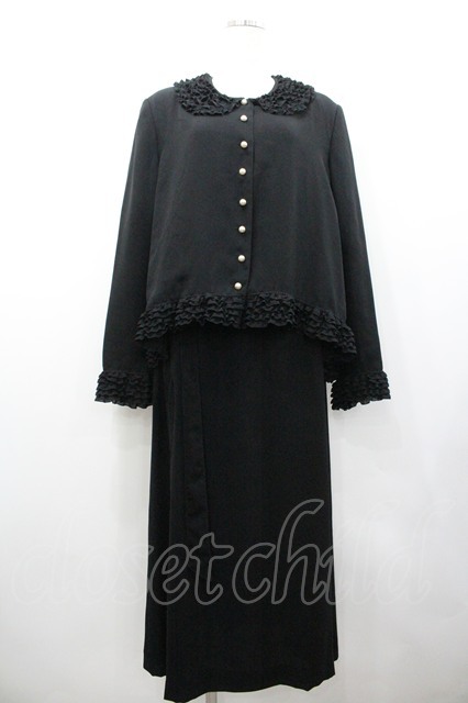 KANEKO ISAO / ピコフリル襟袖ジャケット&スカートセットアップ ブラック I-26-01-24-081-EL-SK-SA-ZI [2100060000045424-I-26-01-24-081-EL-SK-SA-ZI]