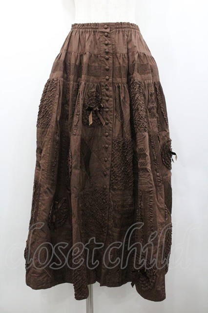WONDERFUL WORLD / ピコフリル&ピンタックモチーフパッチワークスカート ブラウン I-26-01-24-084-LO-SK-SA-ZI