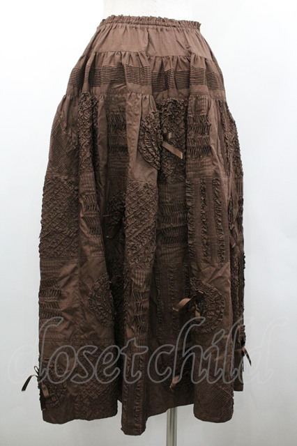 WONDERFUL WORLD / ピコフリル&ピンタックモチーフパッチワークスカート ブラウン I-26-01-24-084-LO-SK-SA-ZI [2100060000045435-I-26-01-24-084-LO-SK-SA-ZI]