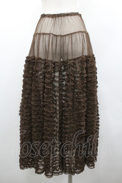 KANEKO ISAO / チュールフリルオーバースカート ブラウン I-26-01-24-085-EL-SK-SA-ZI