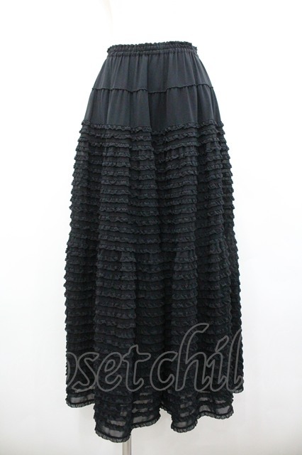 KANEKO ISAO / ポリエステルピコフリルスカート ブラック I-26-01-24-087-EL-SK-SA-ZI [2100060000045439-I-26-01-24-087-EL-SK-SA-ZI]