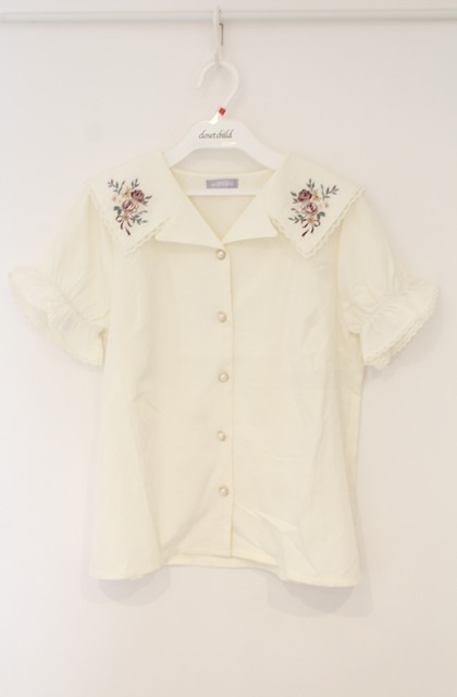 axes femme POETIQUE / ブーケ刺繍襟ブラウス M キナリ O-26-01-23-047-AX-BL-OW-OS