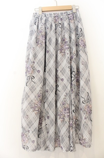 axes femme / ロージーチェックドロストスカート F グレー O-26-01-23-013-AX-SK-OW-OS