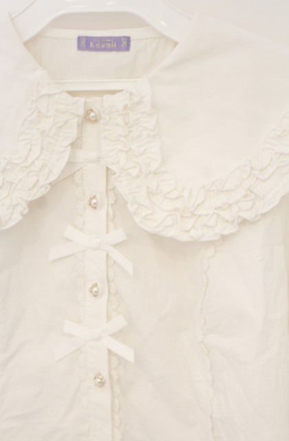 axes femme kawaii / 半袖丸襟コットンブラウス M シロ O-26-01-23-025-AX-BL-OW-OS