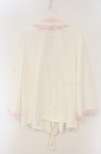 axes femme kawaii / 衿レース付き和風ブラウス M シロ×ピンク O-26-01-23-049-AX-BL-OW-OS