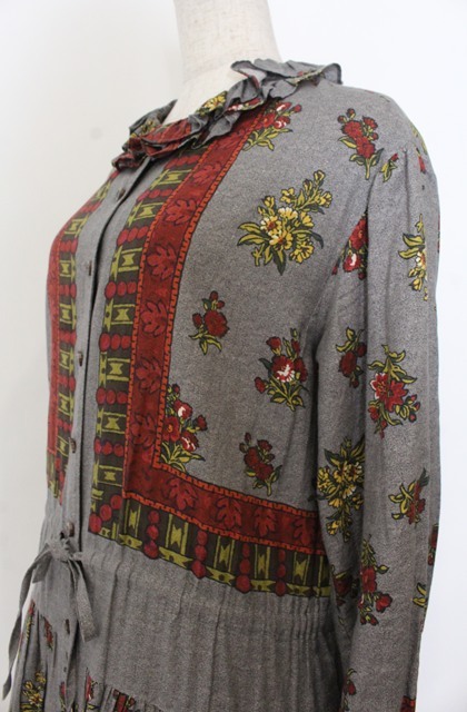 Jane Marple Dans Le Salon / Flowers of Jouy scarf Agathaドレス M グレー O-26-01-23-020-JM-OP-OW-OS