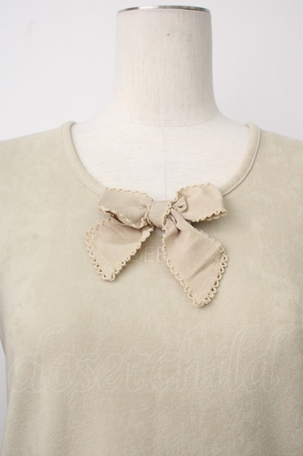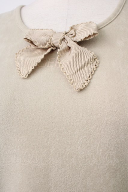 INGEBORG / 胸元リボン付ベロア風プルオーバー 若草 T-26-01-29-006-LO-TO-SA-ZT581