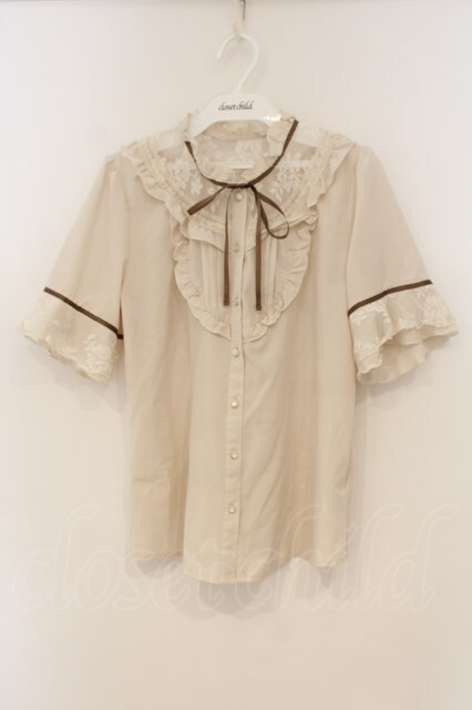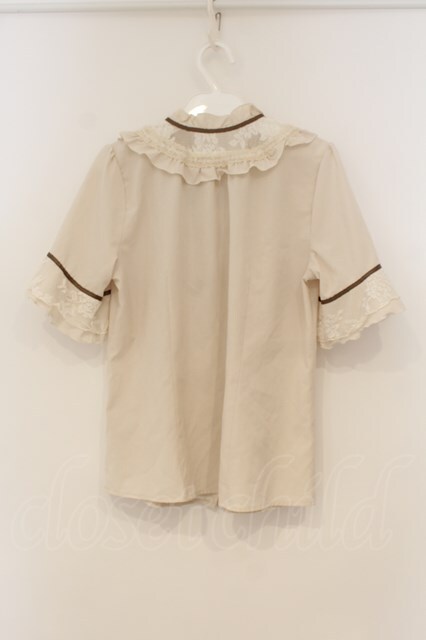 axes femme / 透けレースとろみ半袖ブラウス M キナリ O-26-01-26-030-AX-BL-OW-OS