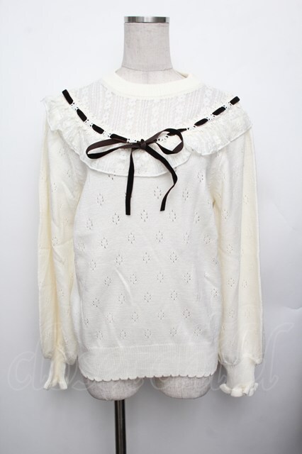 axes femme / ヨークレース切替ニットプルオーバー オフ S-26-01-25-018-AX-TO-AS-ZS