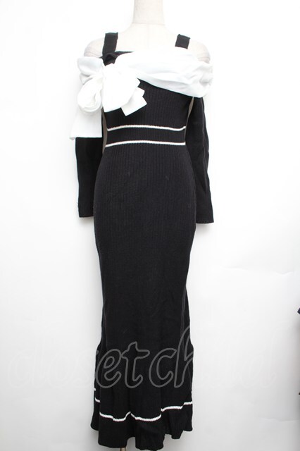 evelyn / デコルテリボンワンピース 黒 S-26-01-25-054-LO-OP-AS-ZS