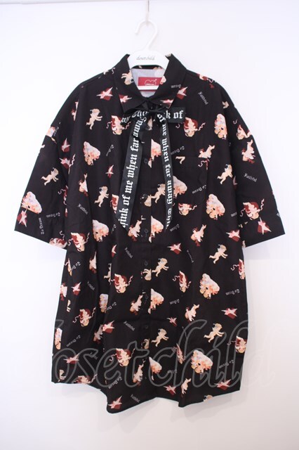 Jamie エーエヌケー / エンジェルプリントBIGシャツ M クロ O-26-01-27-060-LO-BL-OW-OS