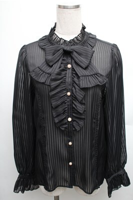 axes femme kawaii / ストライプシフォンブラウス 黒 S-26-01-26-028-AX-BL-HR-ZS