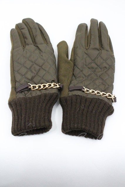 axes femme / チェーンデザイン手袋 カーキXブラウン I-26-01-26-004-AX-ZA-SA-ZI