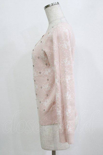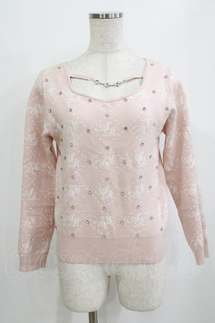 Ank Rouge / ストーンモノグラムニット M ピンク H-26-01-30-056-CA-TO-NS-ZH