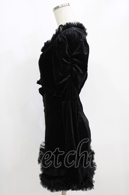 Ank Rouge / チュールフリルフロントあきベロアワンピース M ブラック H-26-01-30-026-CA-OP-NS-ZH