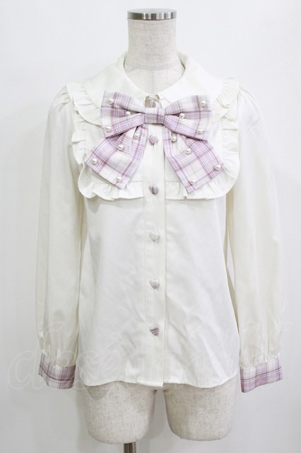 Ank Rouge / パールリボンブラウス M オフ/ピンク H-26-01-30-047-CA-BL-NS-ZH