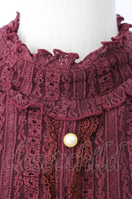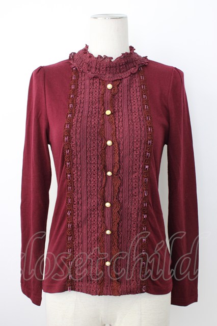 axes femme / ブローチ付ハイネックプルオーバー ボルドー T-26-01-28-002-AX-TO-SA-ZT