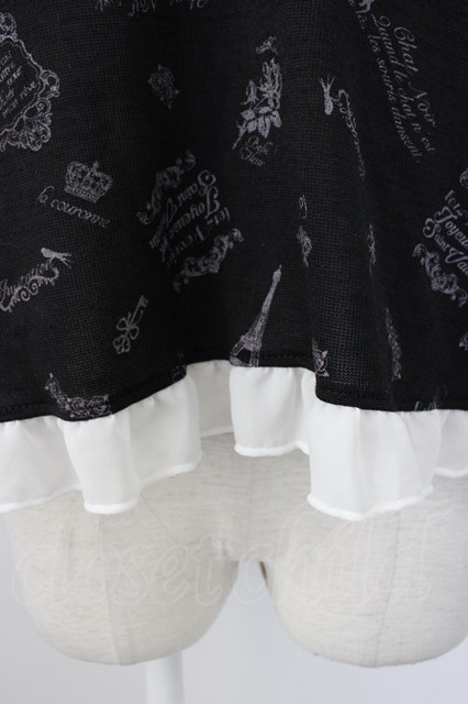 axes femme / 総パリ柄ボータイプルオーバー 黒X白 T-26-01-28-003-AX-TO-SA-ZT