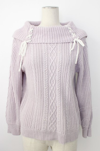 axes femme / 編み下げニットトップス ピンクX白 T-26-01-28-004-AX-TO-SA-ZT [2100060000041656-T-26-01-28-004-AX-TO-SA-ZT]