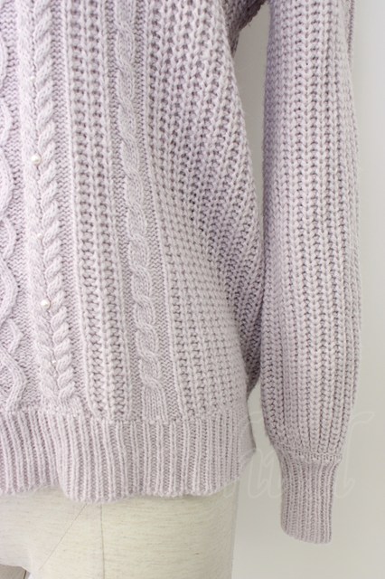 axes femme / 編み下げニットトップス ピンクX白 T-26-01-28-004-AX-TO-SA-ZT