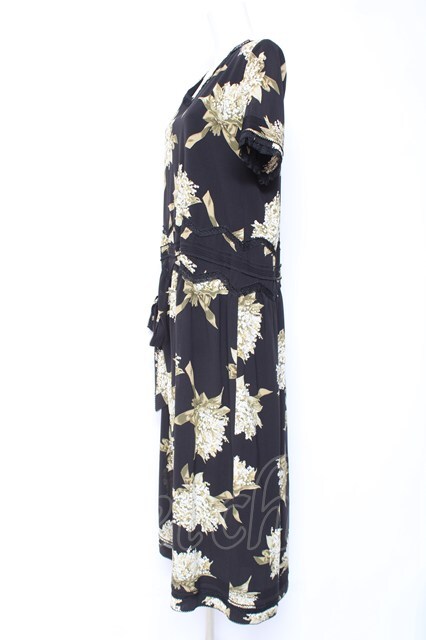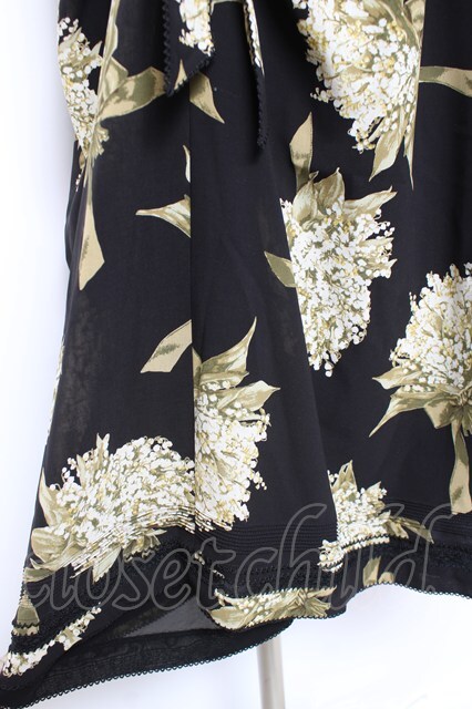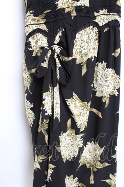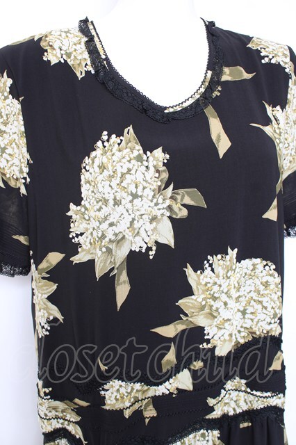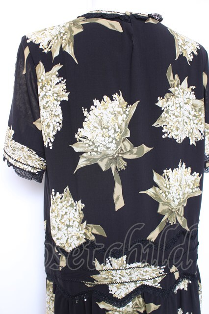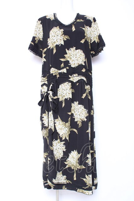 KANEKO ISAO / スズラン柄たくし上げリボン付き半袖ワンピース ブラック Y-26-01-27-017-EL-OP-SA-ZY [2100060000006805-Y-26-01-27-017-EL-OP-SA-ZY]