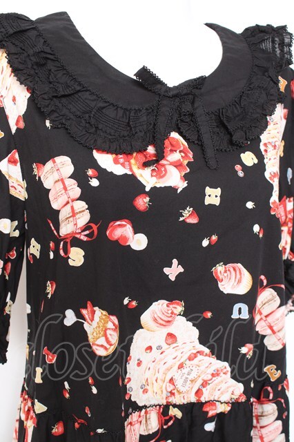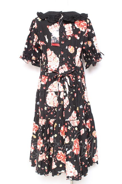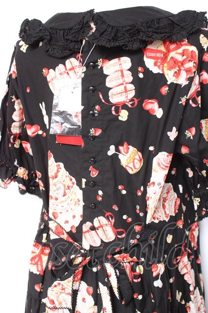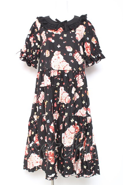 PINK HOUSE / アニバーサリーケーキプリントミディワンピース 黒 Y-26-01-27-018-LO-OP-SZ-ZY
