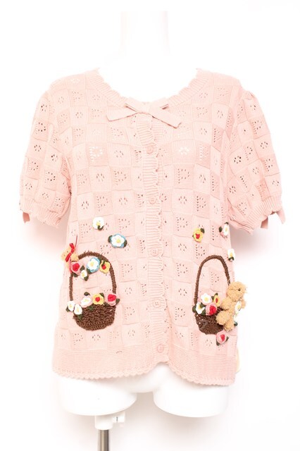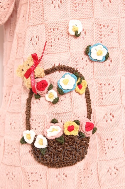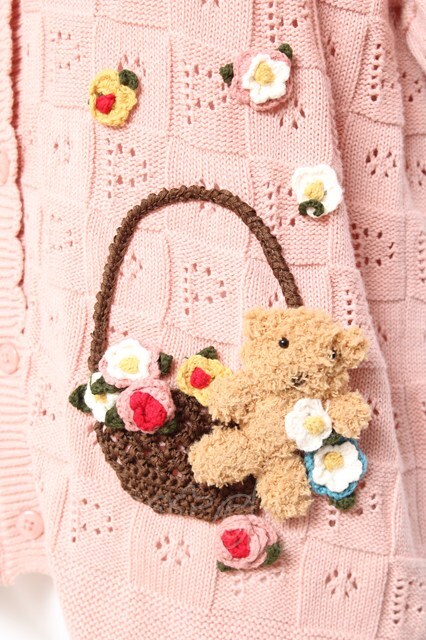 PINK HOUSE / フラワーバスケットテディ付きカーディガン ピンク Y-26-01-27-040-LO-TO-SZ-ZY