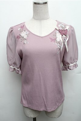 axes femme / パピヨンフルール刺繍プルオーバー M パープル S-26-01-27-048-AX-TO-TE-ZS