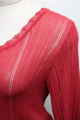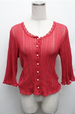 axes femme / プチパール釦シアーニットカーディガン F 赤 S-26-01-27-052-AX-TO-TE-ZS