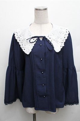 axes femme / 刺繍入りビッグカラーブラウス M ネイビー S-26-01-27-053-AX-BL-TE-ZS