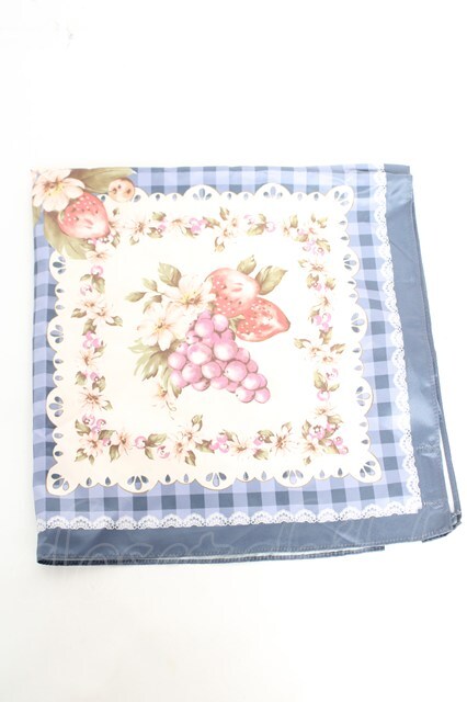 axes femme / ギンガム×フルーツ柄スカーフ 青 Y-26-01-28-008-AX-ZA-SZ-ZY [2100070000059826-Y-26-01-28-008-AX-ZA-SZ-ZY]