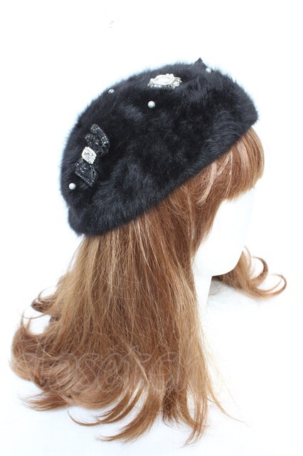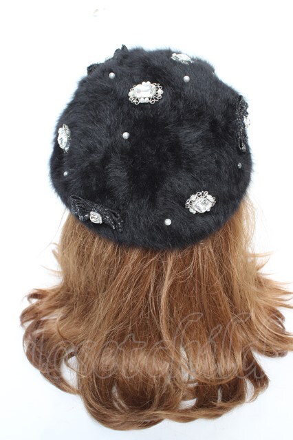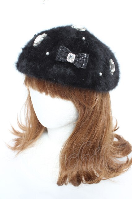 NOEMIE / シャギーツイードリボンベレー 黒 Y-26-01-28-016-LO-AC-SZ-ZY