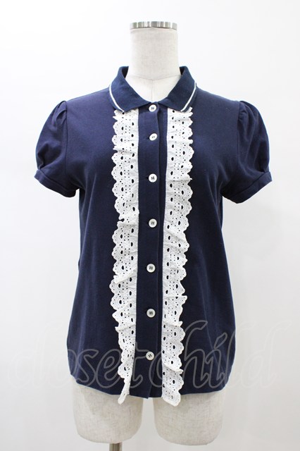 Jane Marple / レース付ポロトップス ネイビー H-26-02-01-1054-JM-TO-KB-ZH [2100030000085013-H-26-02-01-1054-JM-TO-KB-ZH]