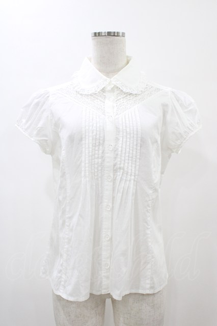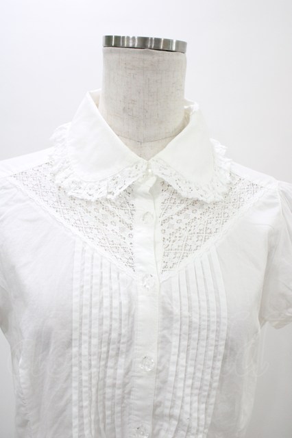 Emily Temple cute / レース切替ピンタックパフブラウス ホワイト H-26-02-01-1041-ET-BL-KB-ZH