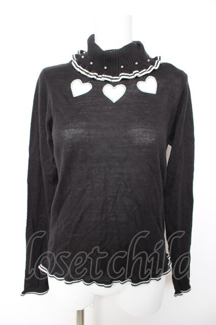 axes femme POETIQUE / ハート柄タートルニットプルオーバー M 黒 Y-26-01-28-052-AX-TO-SZ-ZY