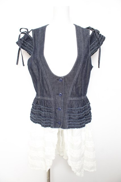 PINK HOUSE / オールドデイムxローンフリルロングベスト 青 Y-26-01-28-071-LO-TO-AS-ZY [2100070000050343-Y-26-01-28-071-LO-TO-AS-ZY]