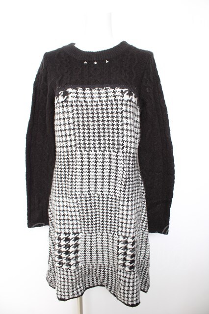 axes femme / 千鳥柄ニットワンピース M クロ Y-26-01-28-105-AX-OP-SZ-ZY