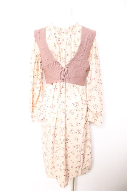 axes femme POETIQUE / ニットビスチェ付シフォンワンピースき M ベージュ Y-26-01-28-107-AX-OP-SZ-ZY