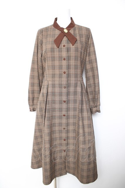 F&A / カメオ付きクロスボウタイチェックワンピース F ブラウン Y-26-01-28-128-LO-OP-SZ-ZY