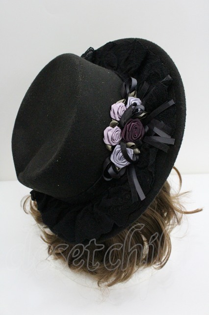 axes femme / 巻きバラブーケポークパイ 黒 I-26-01-27-040-AX-AC-SA-ZI