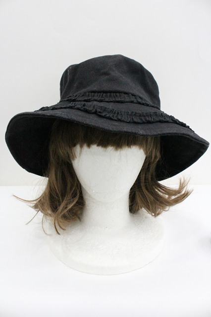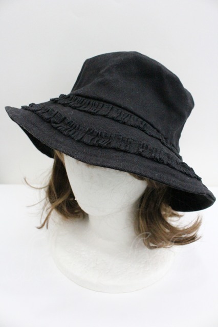 merry jenny / フリルキャンバスバケットハット 黒 I-26-01-27-090-LO-AC-SA-ZI [2100060000045002-I-26-01-27-090-LO-AC-SA-ZI]