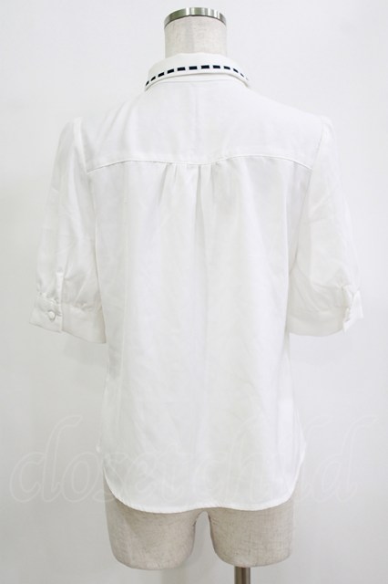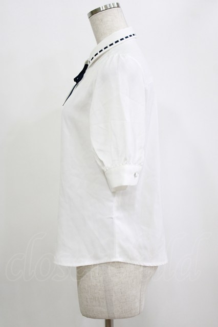 Fi.n.t / 配色タイ付きはしごリボン衿5分袖ブラウス Free OFF×NAVY H-26-02-02-046-CA-BL-NS-ZH