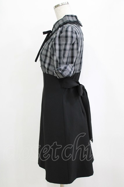 EATME / レースカラーブラウスドッキングワンピース S ブラック/チェック H-26-02-02-034-LO-OP-NS-ZH