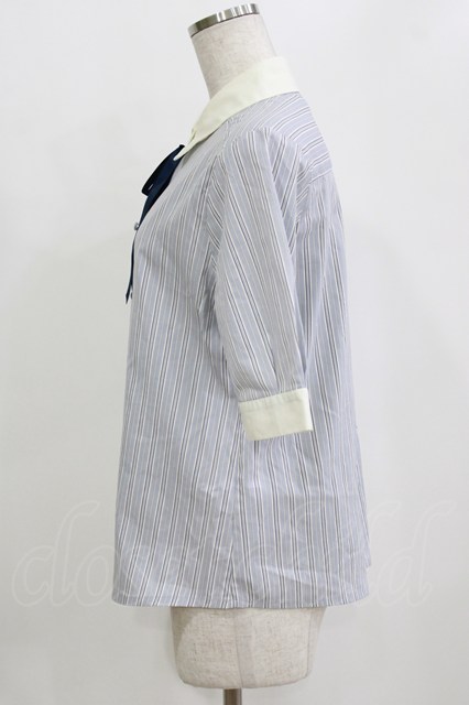 F i.n.t / タイ付きマルチストライプクレリック5分袖シャツ Free L/BLUE H-26-02-02-048-CA-BL-NS-ZH [2100030000085316-H-26-02-02-048-CA-BL-NS-ZH]
