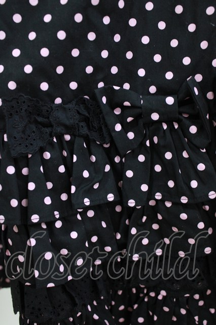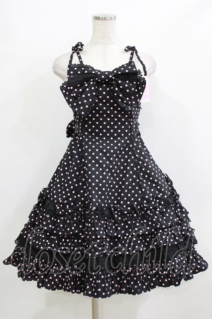 Angelic Pretty / リボントッピング ドットジャンパースカート Free ブラック/ピンク H-26-02-02-002-AP-OP-NS-ZH