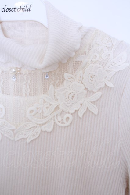 axes femme / パール付きハイネックニット M キナリ O-26-01-28-016-AX-TO-OW-OS