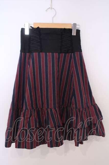 Innocent World / ストライプ編み上げスカート ネイビー×ワイン×クロ O-26-01-28-049-IW-SK-IG-OS